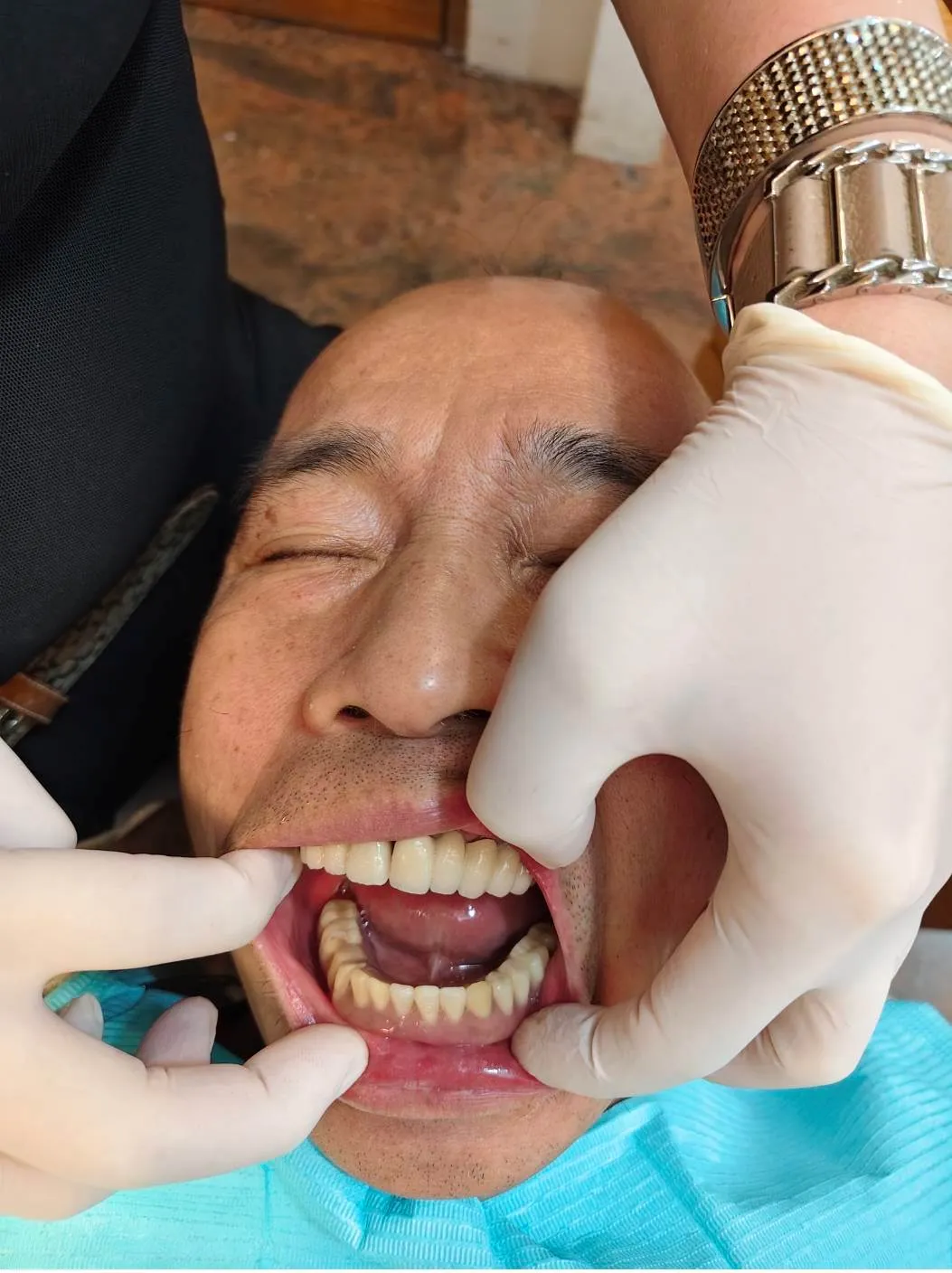 我住大里,原本牙齒都感到鬆動,吃東西真的非常不方便,經朋友介紹到烏日楊俊明牙醫做全口診治,楊醫師把該保留的牙齒,經過根管治療保留,並做鈕扣、磁鐵,最後接受楊醫師建議,在下顎植入四顆植牙當全口假牙支撐,楊醫師技術高超,植牙手術不會腫也不會很痛,且恢復很快,現在我吃東西變得太方便了,任何肉類、堅果、水果都可以吃,太感謝楊醫師的診療。