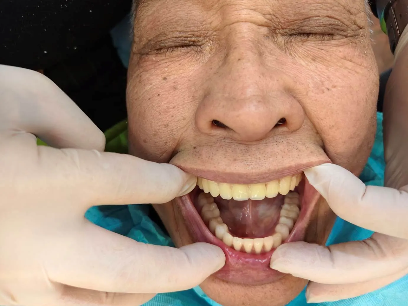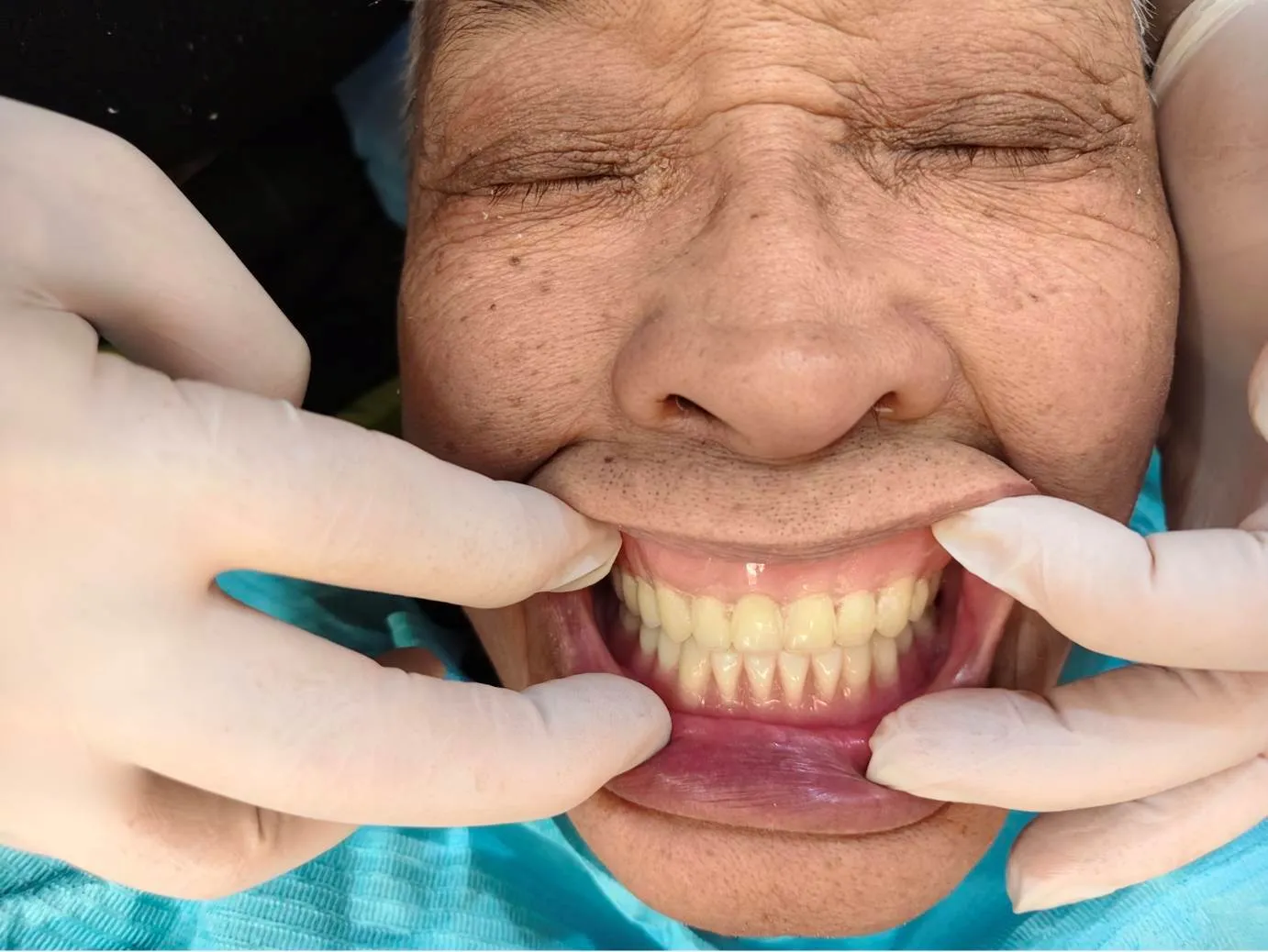 我是一個賣菜的菜車老闆,真的非常感謝一位來買菜的太太,她知道我做了三副假牙都不能咬,不敢咀嚼,只有硬吞下去,太可憐了,她說她也沒半顆牙,後來給楊醫師植牙兩顆做鈕扣,連芭樂都能咬,我聽了馬上去找楊醫師說,我也要植牙兩顆,才能固定下面假牙,現在我真的可以吃芭樂,吃任何食物了。