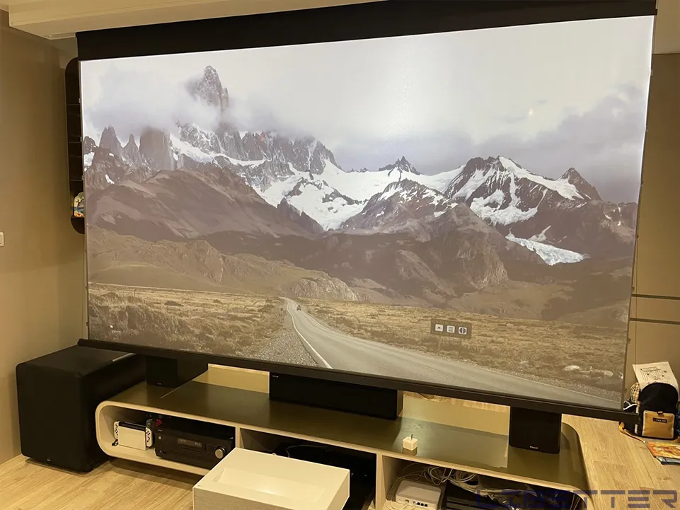 家用案例:LG HU715QW 雷射電視 搭配 HSBI 1.0 台製120吋 電動黑柵抗光幕 雷射光源更耐用!