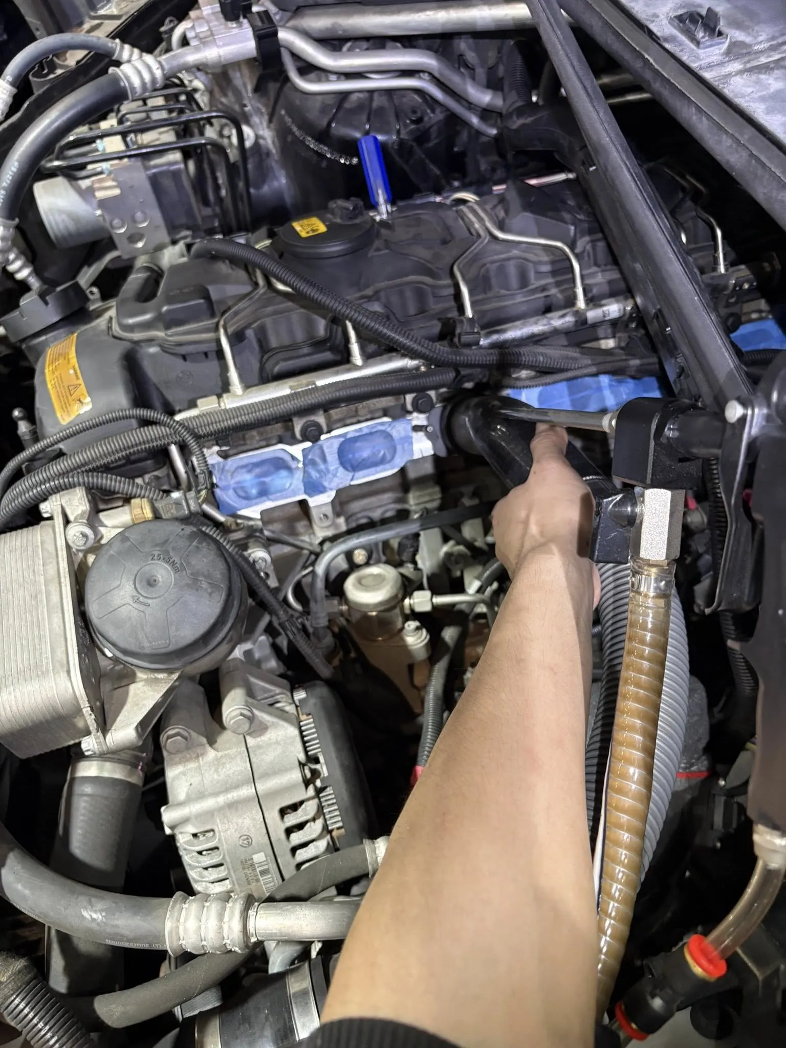 BMW X6 F16 搭載N55引擎核桃沙積碳清洗+搖臂蓋漏油更新