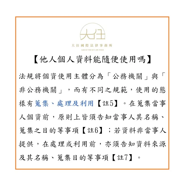「個人資料保護法」就是為了防止濫用他人個人資料而制定,因此對於個人資料如何使用也有相當之規範。