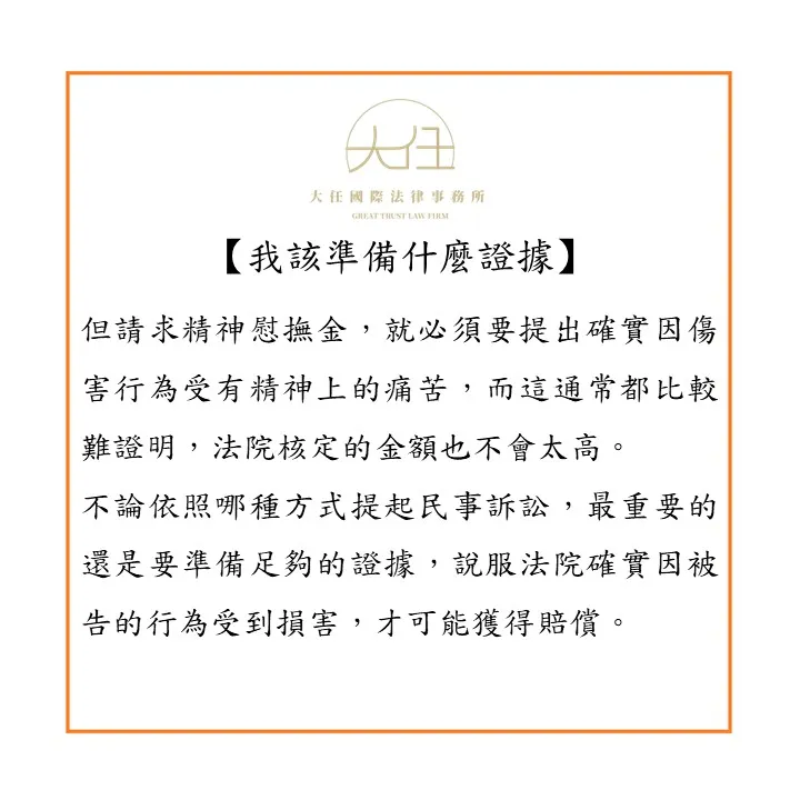 不論依照哪種方式提起民事訴訟,最重要的還是要準備足夠的證據,說服法院確實因被告的行為受到損害,才可能獲得賠償。