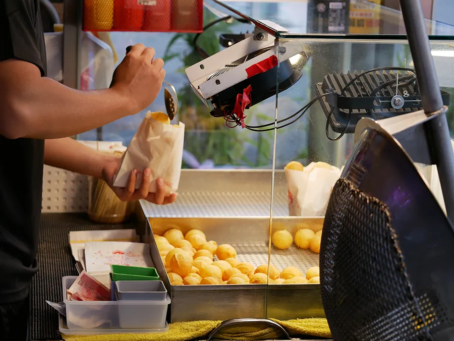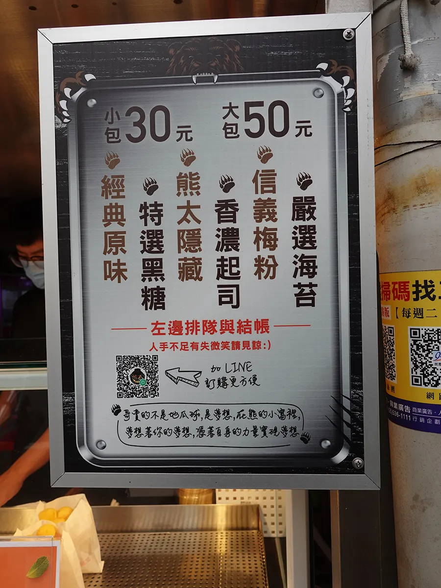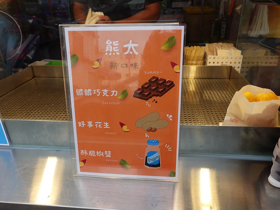 除了一般常見的梅粉、黑糖,比較特別還有隱藏版、椒鹽口味,這應該是我吃過口味最多的地瓜球了