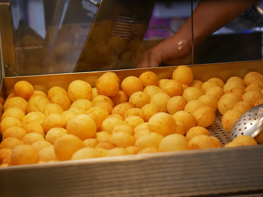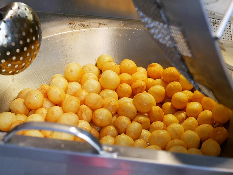 地瓜球每一顆都又大又圓,口感酥脆大顆,QQ帶有嚼勁,在嘴裡有濃厚的地瓜香甜味,越吃越涮嘴
