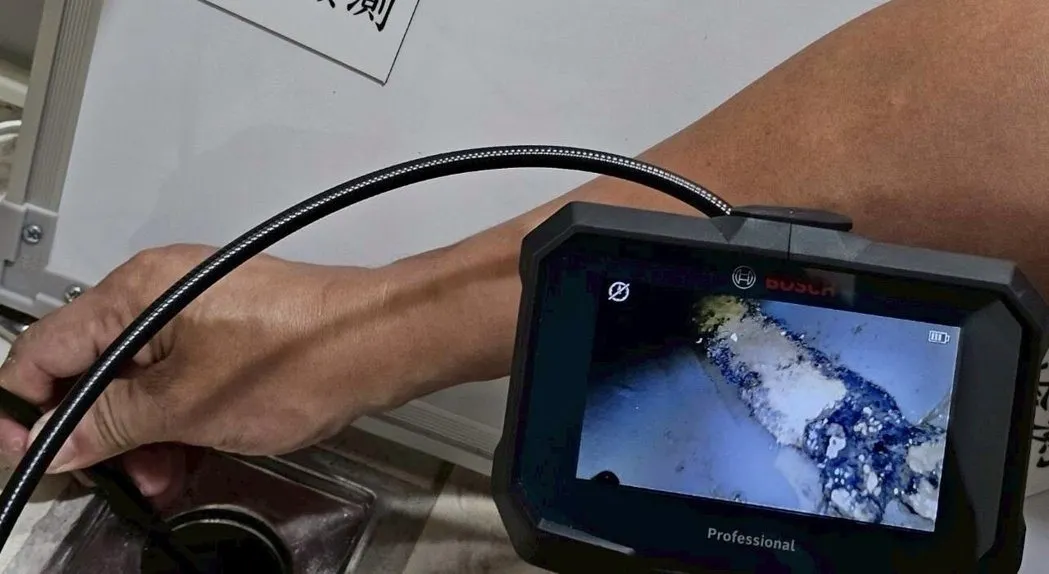 衛浴排水孔以內視鏡檢查,發現管內有異物。業者/提供