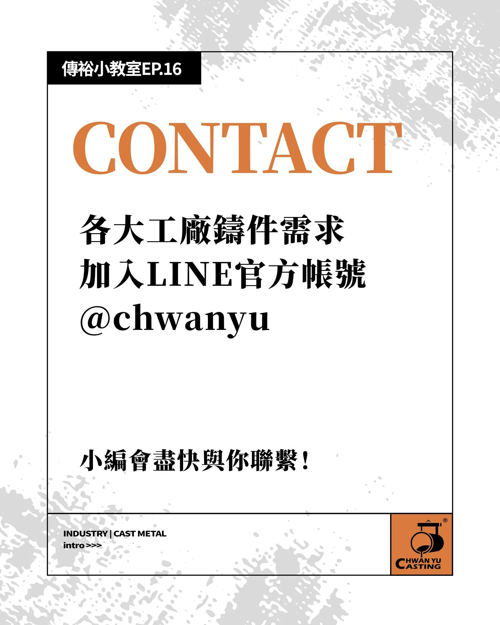 有鑄鐵件需求請加入傳裕 LINE 官方帳號洽詢: