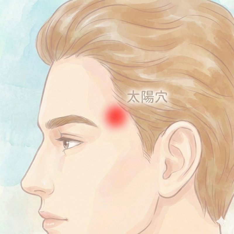 眉尾與眼尾中間,向後約一指寬的凹陷處。