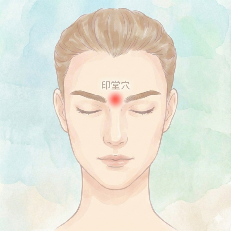 👉 第二是印堂穴 (思緒混亂的暫停鍵)
