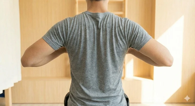 痛點解決: 激活背部肌肉,偷偷把圓肩拉回來。
