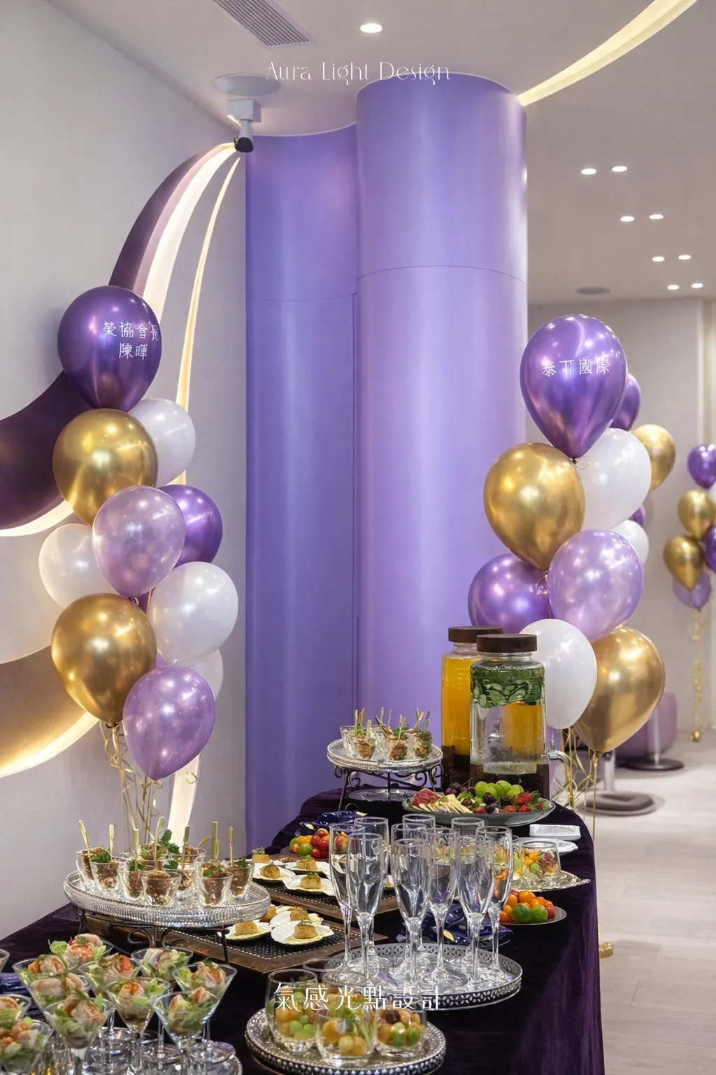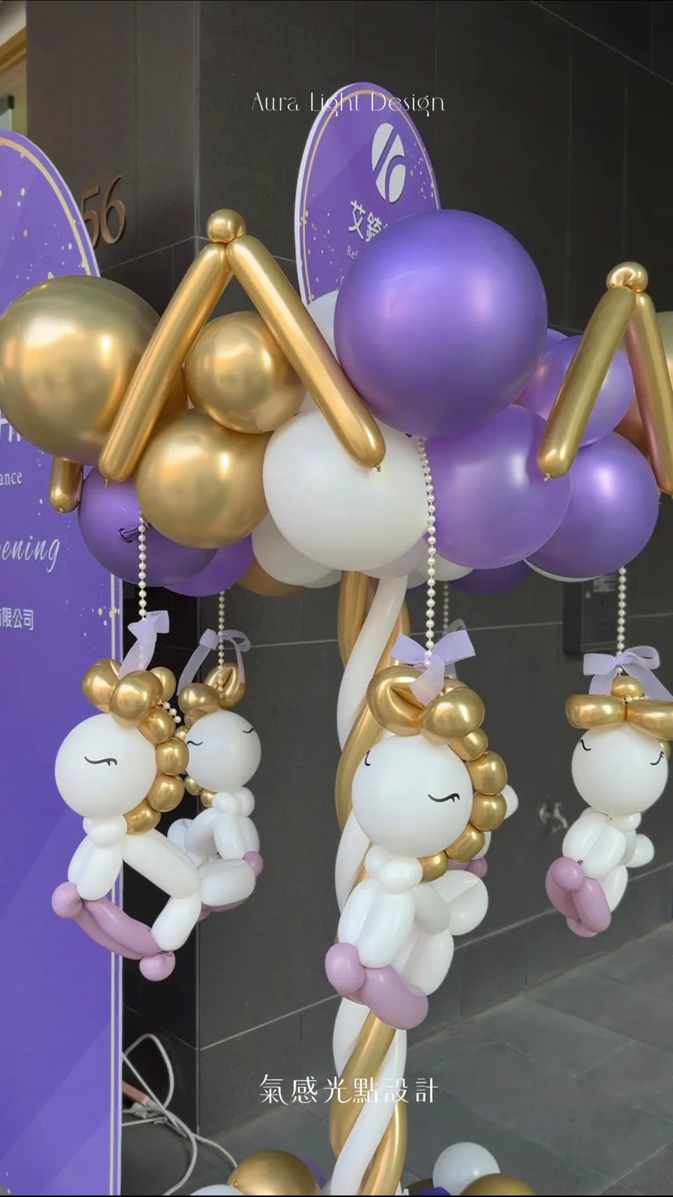 旋轉木馬迎賓氣球 × 飛升氣球 × 紫金白質感設計