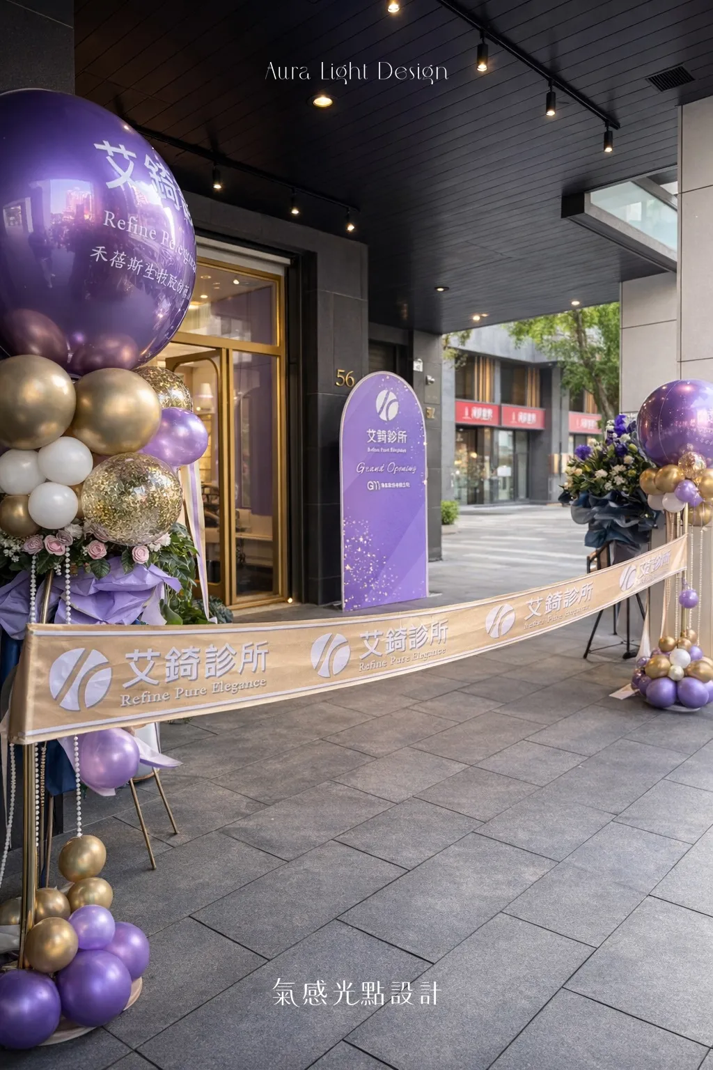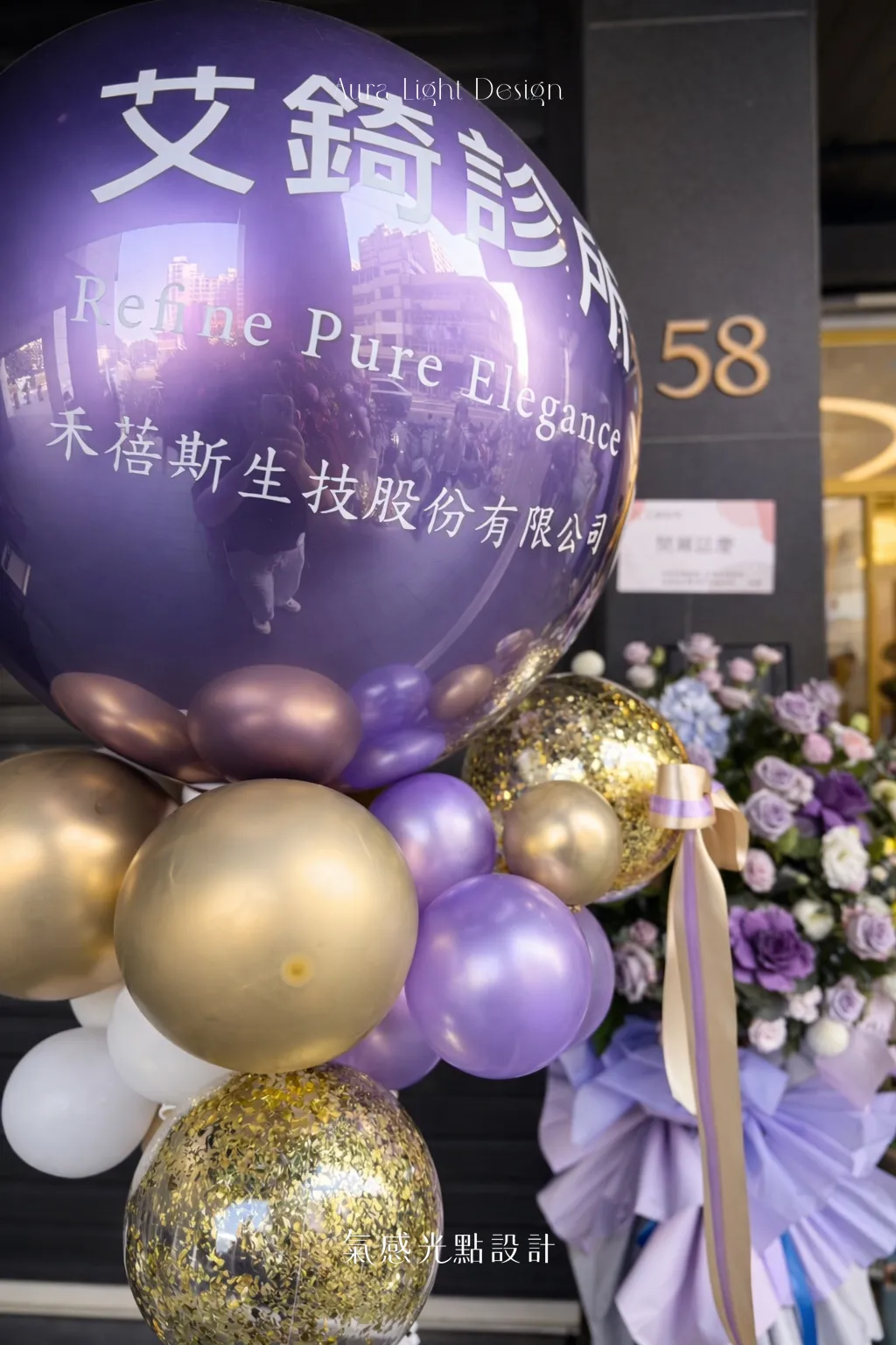 這次的醫美開幕活動,我們以 旋轉木馬迎賓氣球飛升氣球佈置紫金白質感配色 為核心,打造兼具精緻感、儀式感與拍照效果的開幕空間。