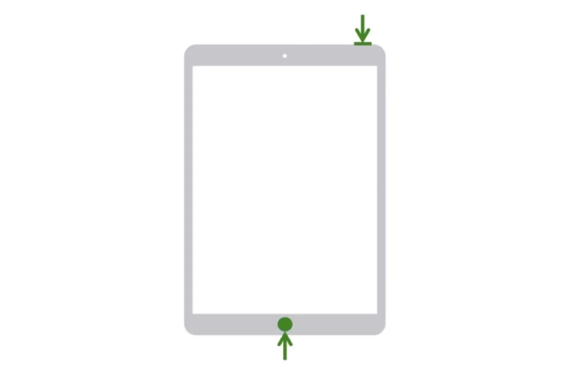 - iPad有Home鍵:同時按住「Home」和「電源」鍵,直到Apple標誌出現。