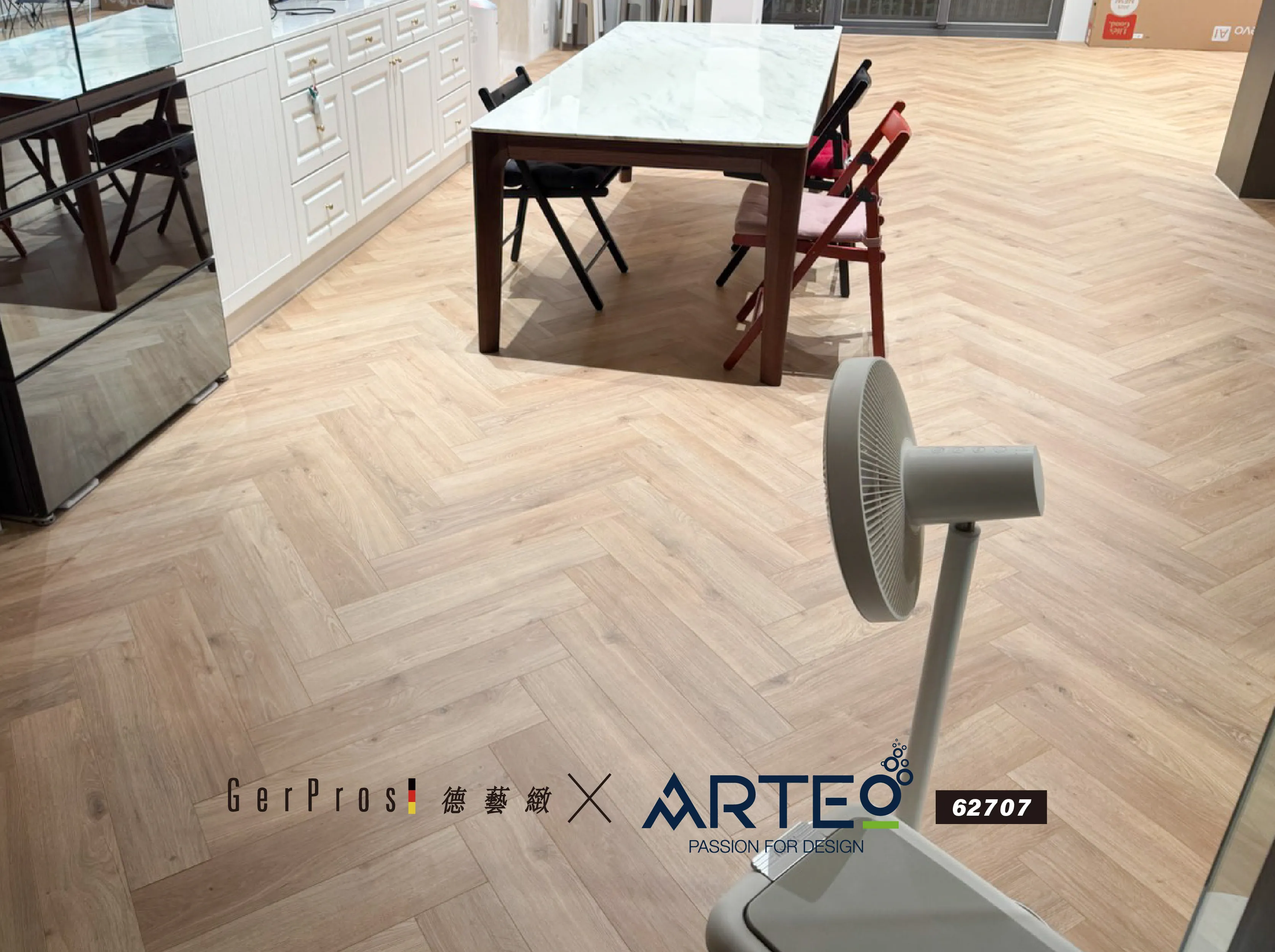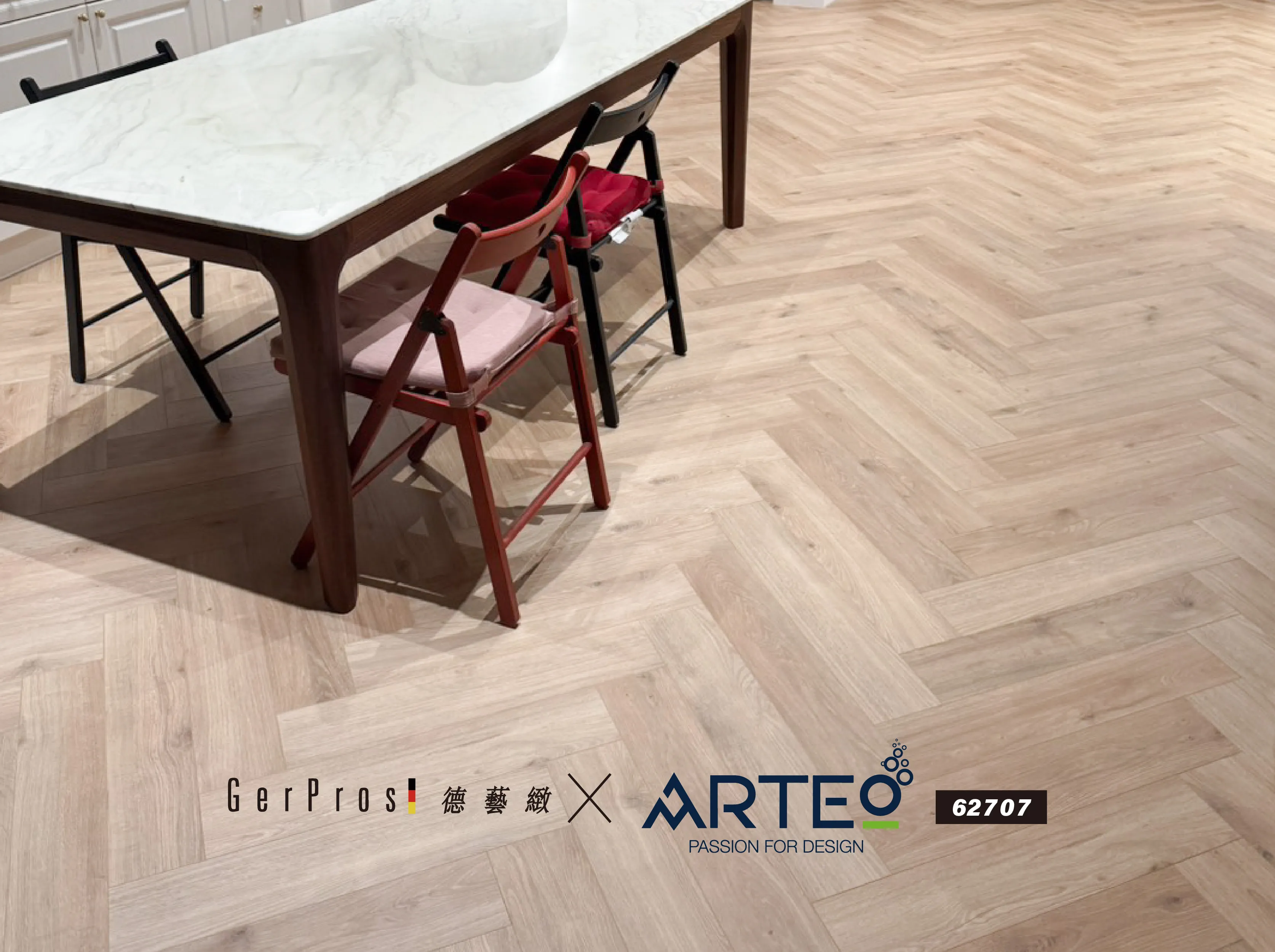 ARTEO 62707 以溫潤淺木色搭配人字拼工法,