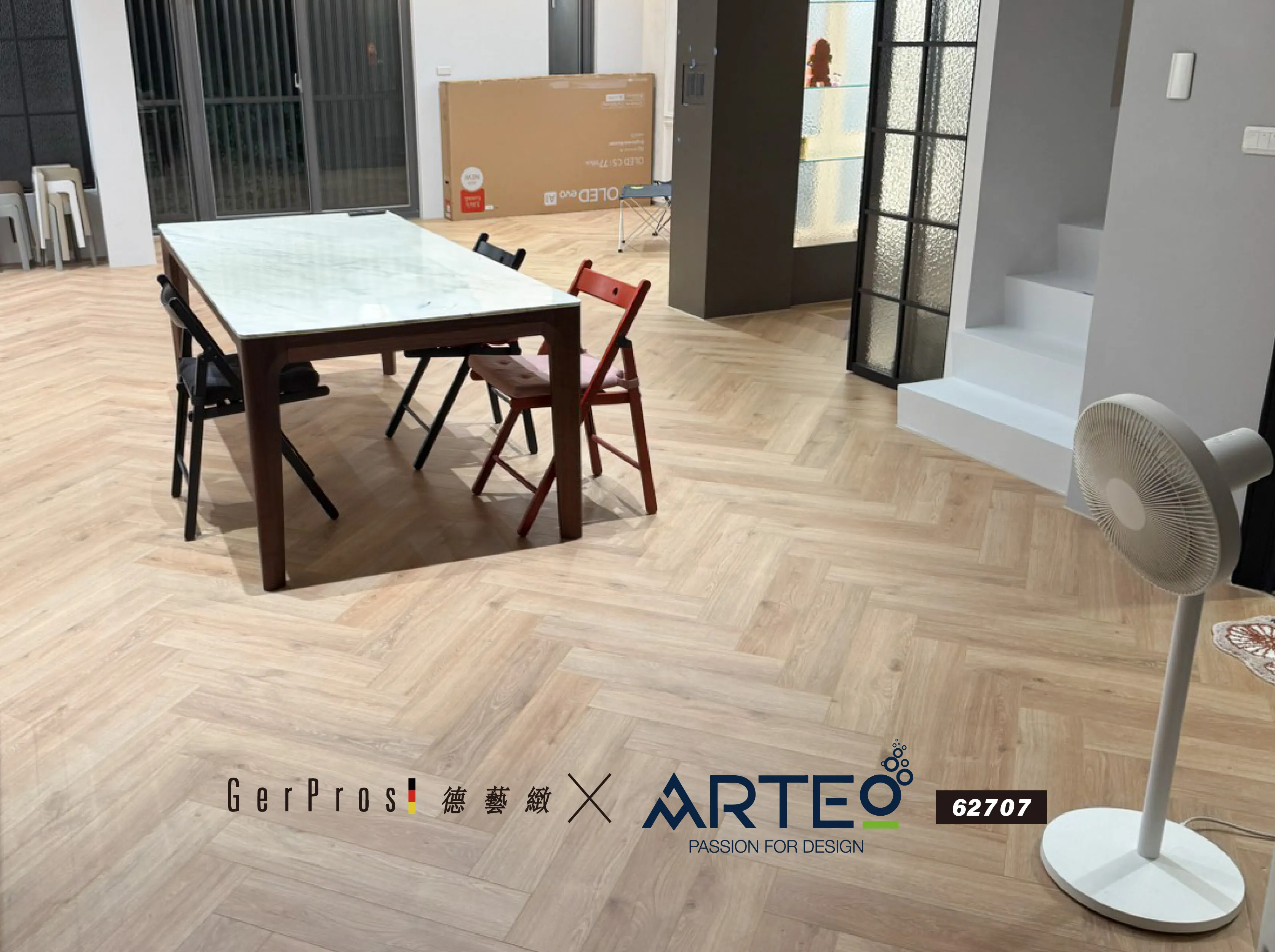 使用產品:德國 ARTEO 超耐磨木地板 — 人字拼系列 62707