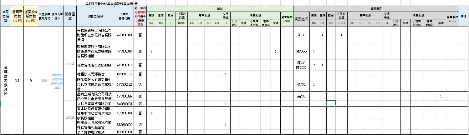 115年03月A單位派案予B單位之服務案次統計表