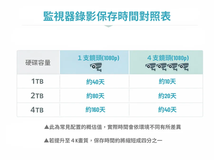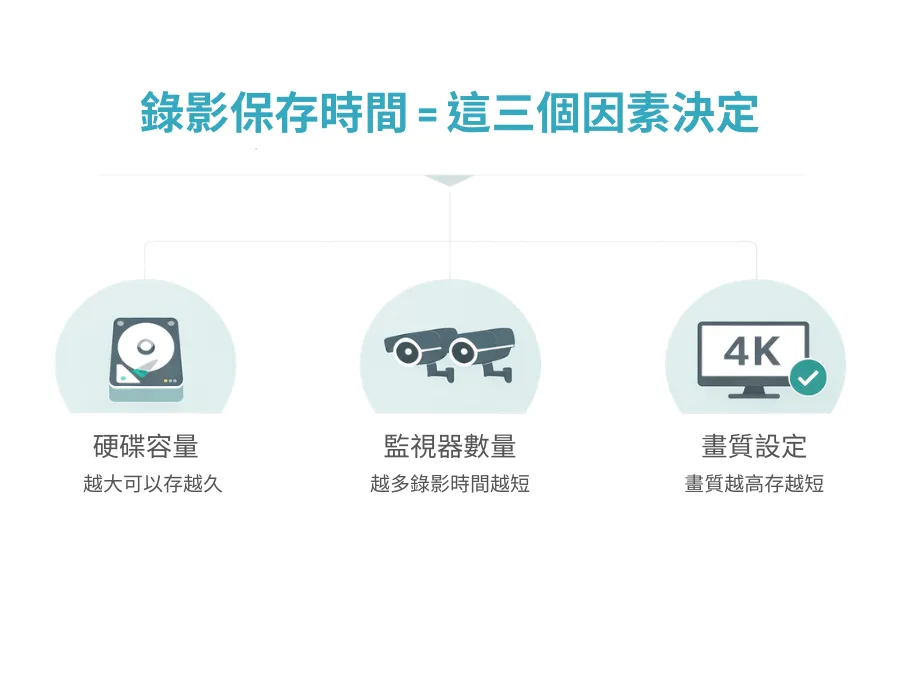 🔹監視器錄影時間,取決於這3件事