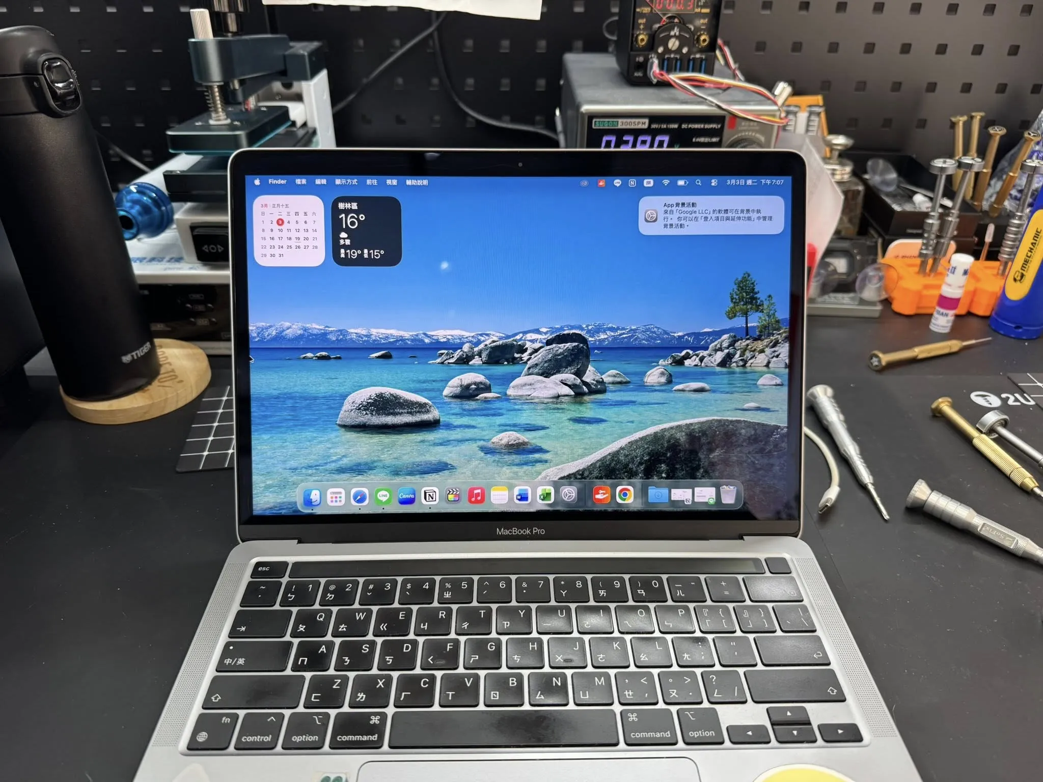 今天一台 A2338 送修,客人表示螢幕突然出現水痕、亮度異常。