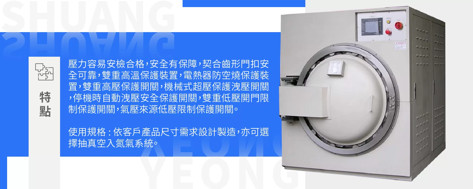 - 壓力製程:適用於需要高壓處理的製程,例如金屬成型或合金製造,確保產品擁有理想的物理性能。