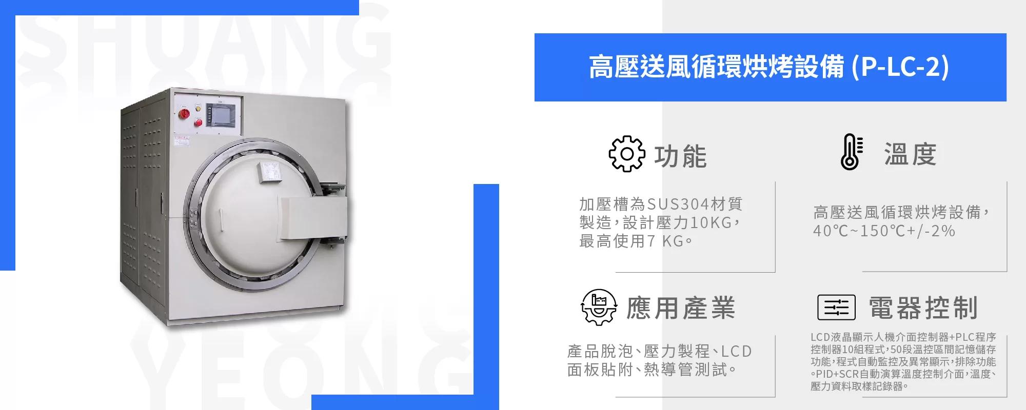 ▶前往了解更詳細熱處理設備介紹:高壓送風循環烘烤設備 (P-LC-2)