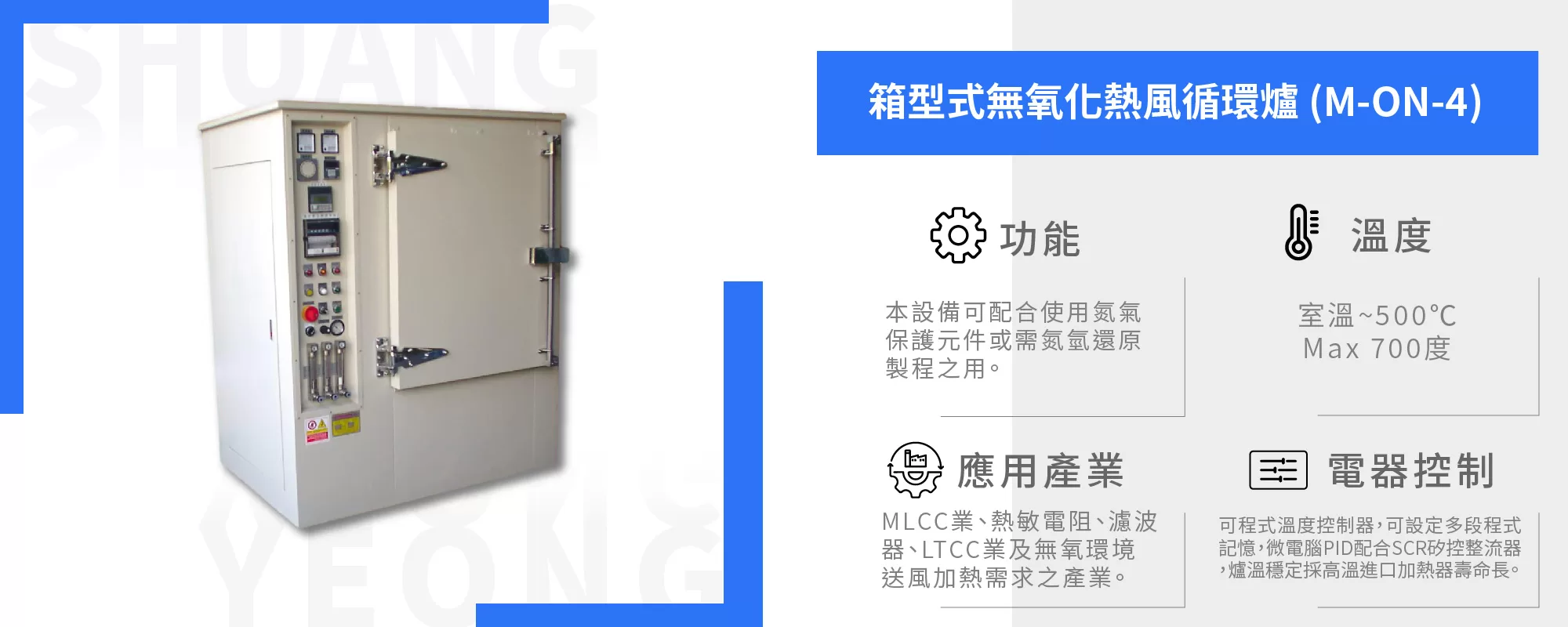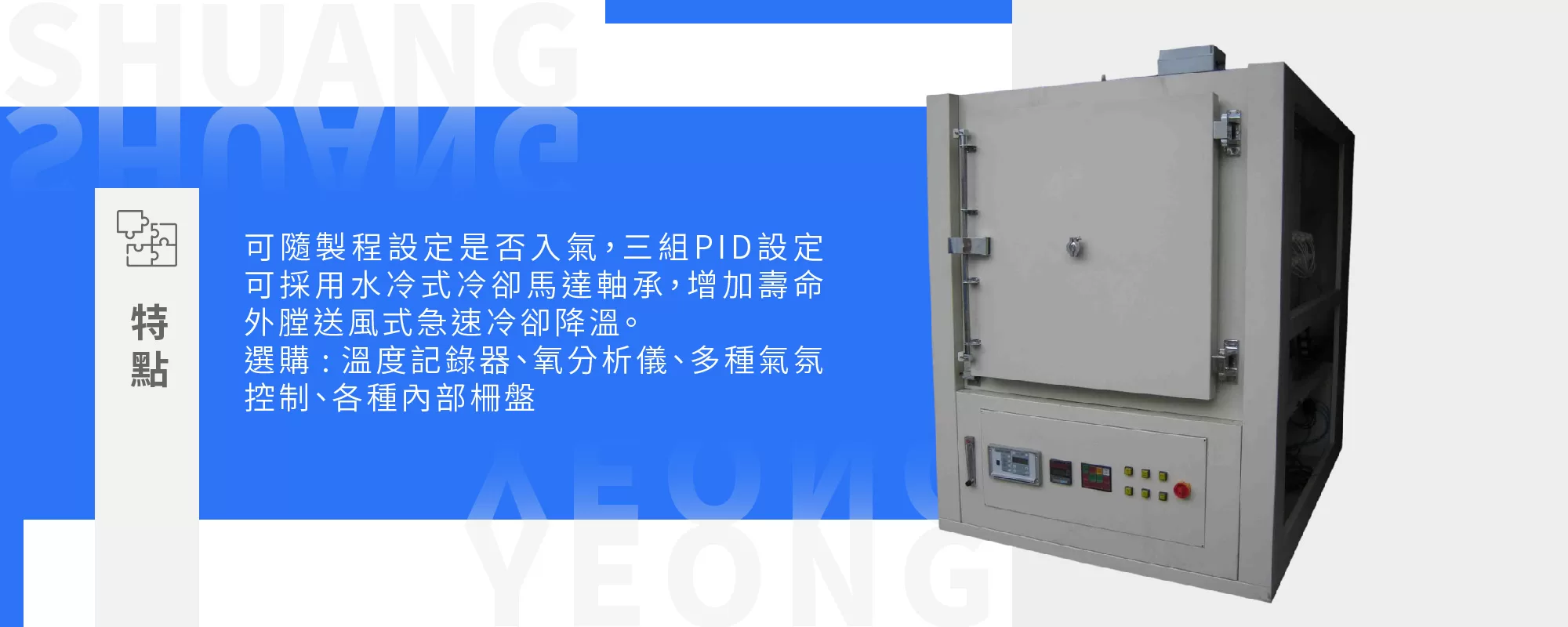 - 高效加熱: PID控制器和SCR矽控整流器確保高效且穩定的加熱過程。