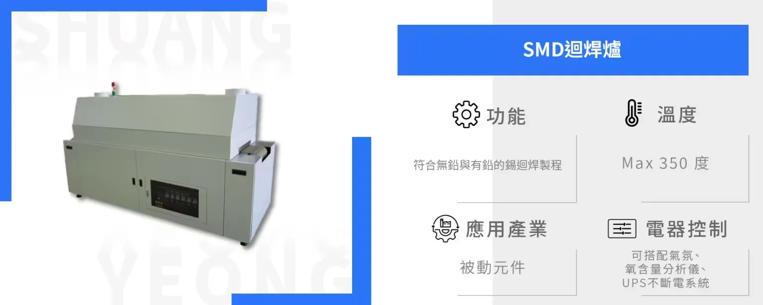 迴焊爐是一種專門用來焊接表面黏著元件(Surface Mount Device, SMD)的設備。這些元件因其尺寸小且功能強大,被廣泛應用於各種電子產品中。其主要任務是通過精確的溫度控制,將SMD元件牢固地焊接在印刷電路板(PCB)上,確保電氣連接的穩定性和可靠性。