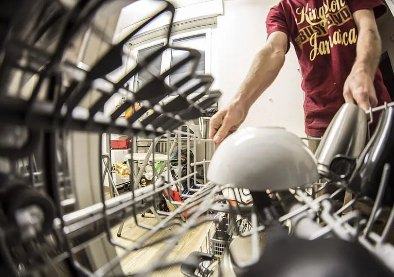 - 沖洗過的碗盤餐具放入架子中需留間隙,避免堆疊。