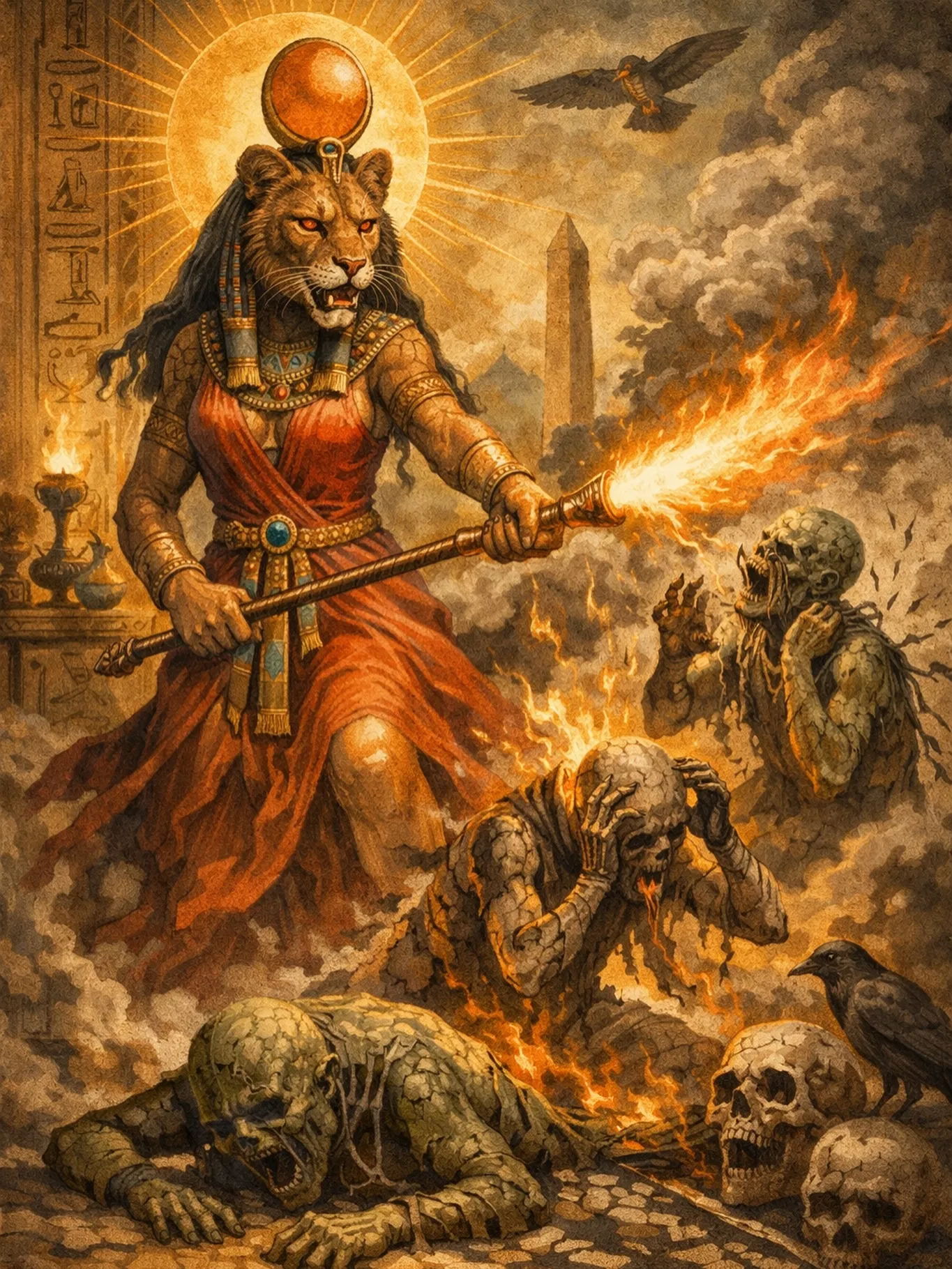 在古埃及的觀念裡,疾病有時被認為是神的憤怒。其中最著名的就是獅頭女神Sekhmet。她既被認為能帶來瘟疫,也能治療疾病。因此古埃及的醫師很多同時也是她的祭司。當疾病流行時,人們會祈求她停止怒火、帶來治療。