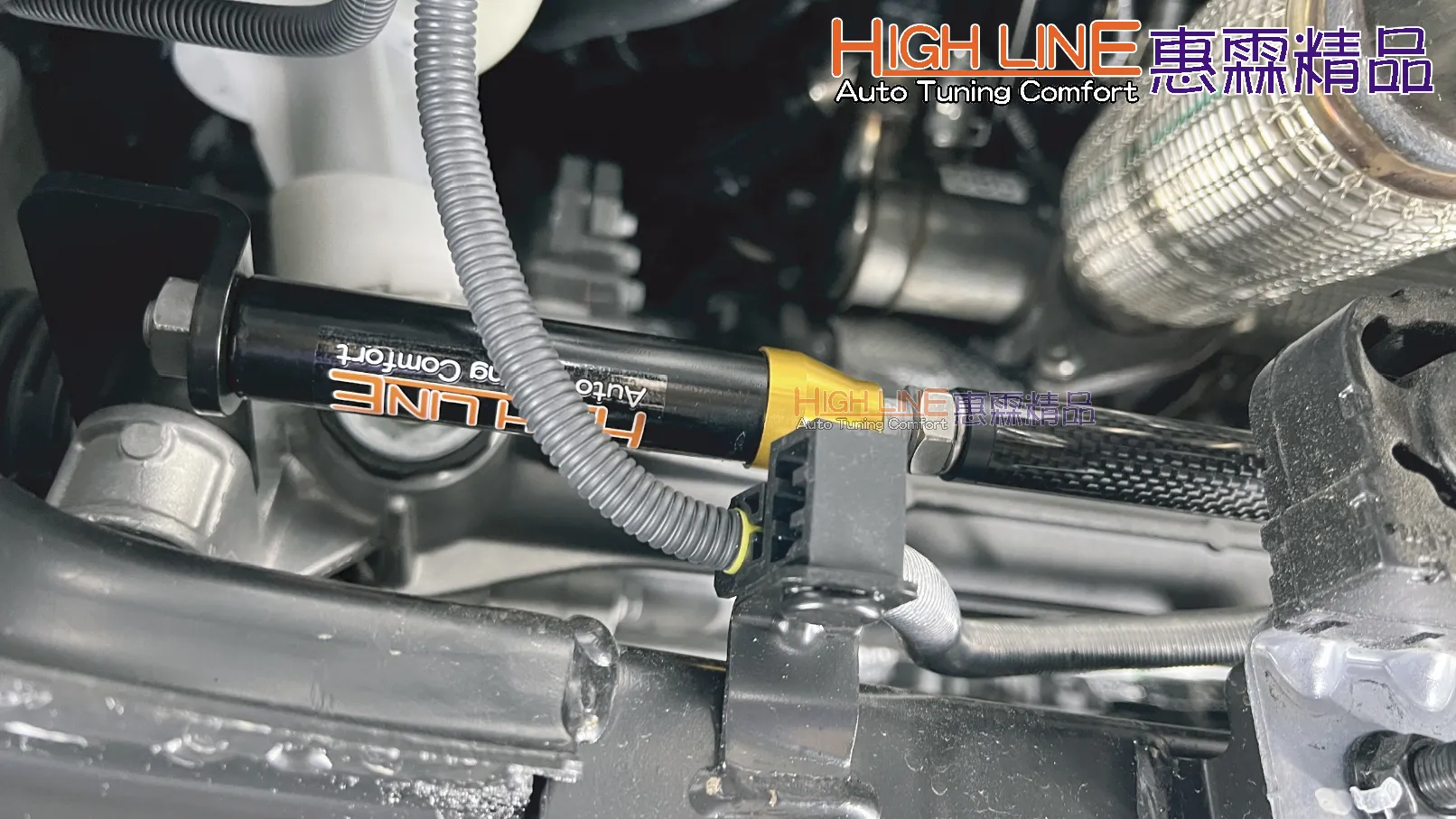 #車身動態平衡制震桿(Performance Body Damper)分散路面衝擊,大幅減少顛簸帶來的彈跳與餘震,行經減速帶或坑洞路面更沉穩扎實不死硬。變換車道或出入山道時 HIGHLINE車身動態平衡制震桿 有效抑制側傾幅度,改善搖晃暈車不適,車身姿態更平穩,方向盤指向性更精準俐落。