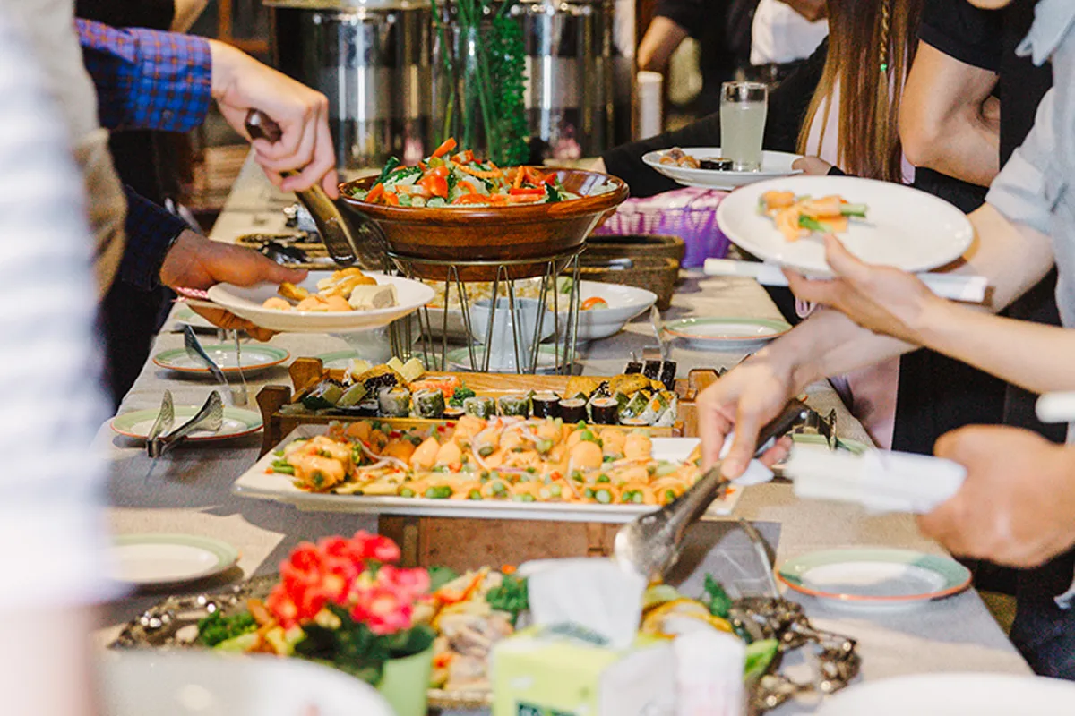 - 規劃順暢的取餐動線,避免賓客擁擠,例如設置多個取餐路線,讓排隊人潮疏散,或是在熱食區和甜品區之間拉開距離。