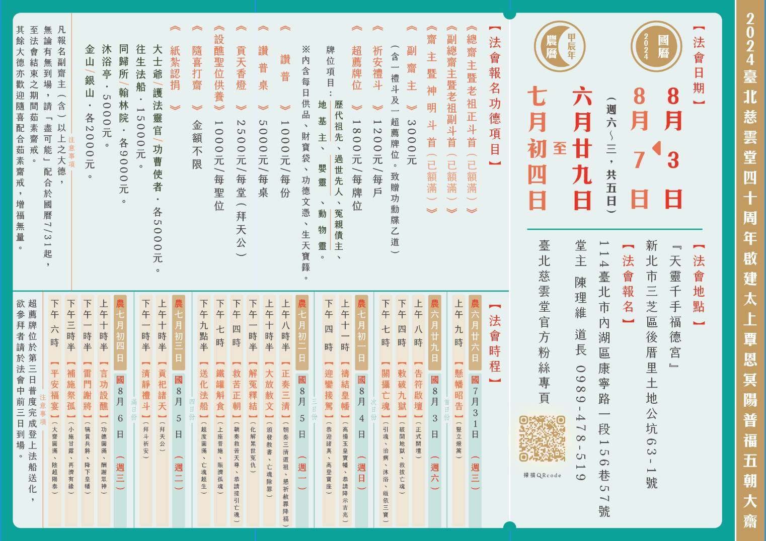 亦可為自己或公司行號報名 #副齋主 或 #平安斗 累積福德資糧共享 #五天齋醮功德