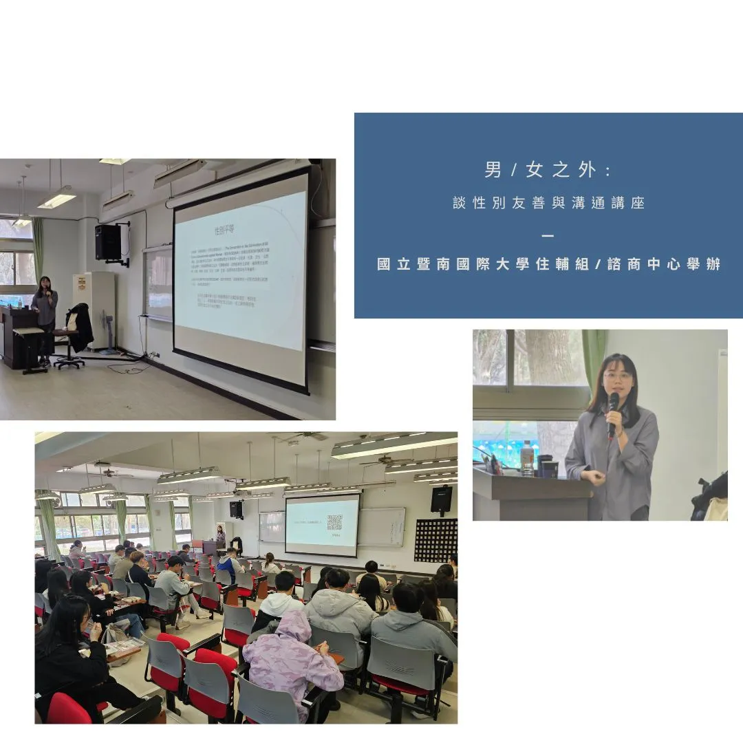 2025-2-20 「男/女之外:談性別友善與溝通講座」(國立暨南國際大學住輔組/諮商中心舉辦)(成人諮商/台中成人諮商)