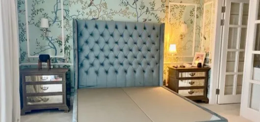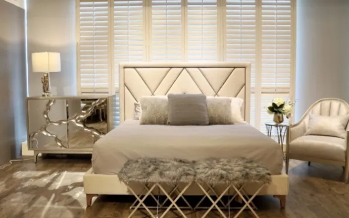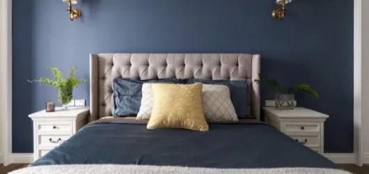 美式布床不知道怎麼搭配牆面?一面素色得宜的牆面,盡顯美式低調奢華,沉穩大器之風範。