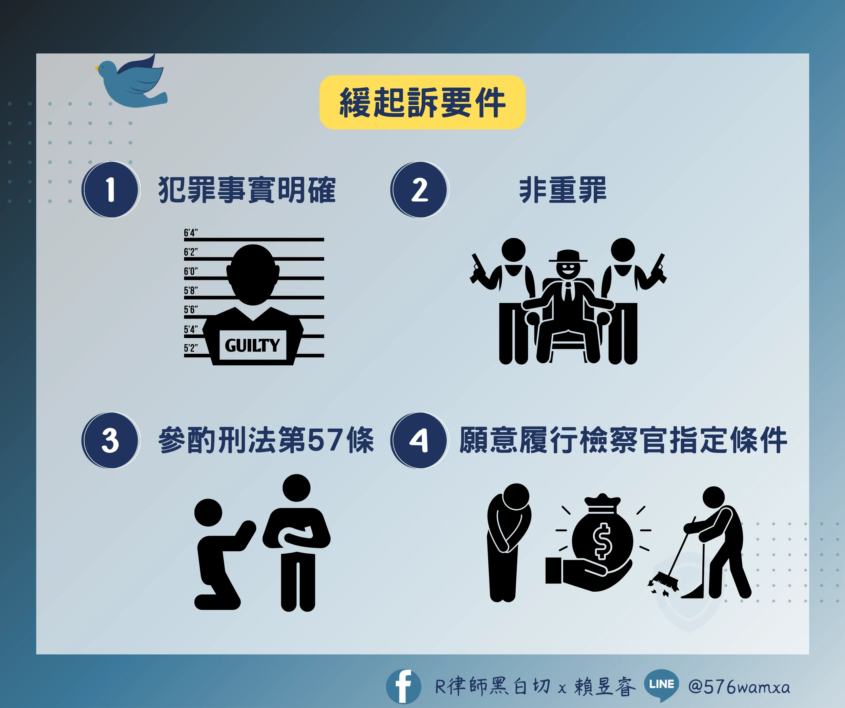 如果你符合上述條件,檢察官就可能說:「OK,給你個機會,但觀察你一段時間(1年~3年),你乖乖照做,這案子就再不起訴囉!」