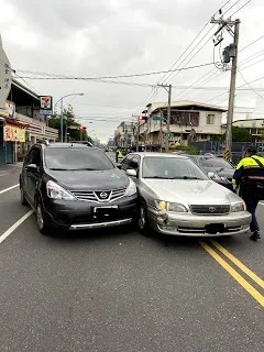 在回程的路上,我下車去小7給安先生買咖啡,進入小7不到5秒的時間,我聽到一聲巨響,出來看到LiLi(我家的Livina),跟別人的車擦撞了,安先生一付懊惱的樣子,直說對不起,幸好双方都沒人受傷,找了警察做了筆錄,拿著派出所給的交通事故登記單給各自的保險公司讓他們處理就好,對方是個很好的人,處理過程中双方都沒有惡言相向,只是安靜的把這事情處理完,也算是不幸中的大幸,整個過程大約1.5小時的時間就完成了。就把他當做生日的特別禮物也沒什麼不好。
