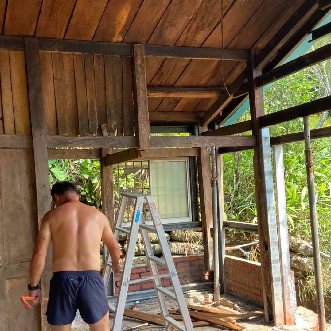 “今天來了個蜘蛛俠,幫忙我們拆除部份內裝,本來帥帥的來,結果弄得全身髒兮兮,然後還煮了午餐跟晚餐給我們吃,才回去。能認識這種好朋友,我們真是修了幾輩子的福,才能遇得到