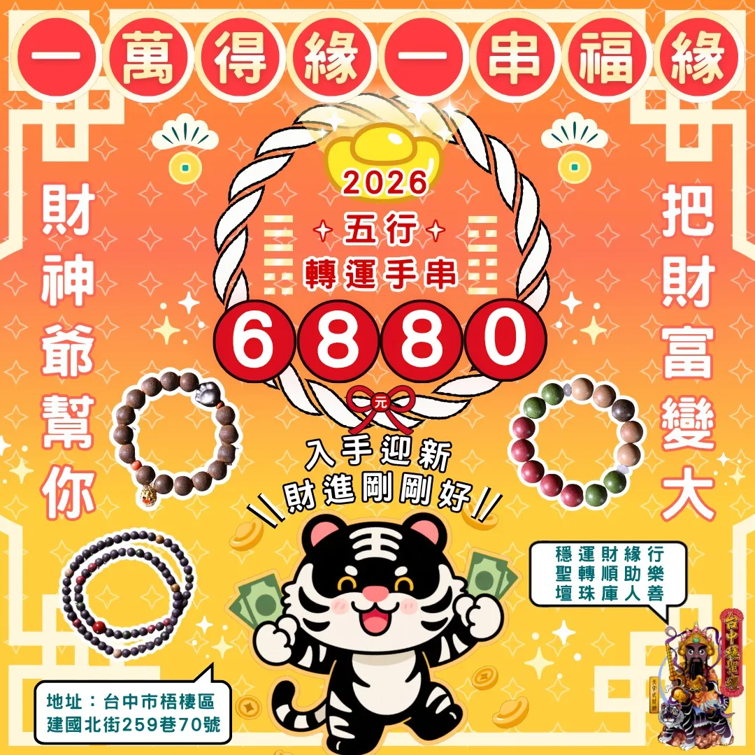 由趙公明財神爺幫你調整氣場、增財運、聚貴人,打造屬於你的五行手串。