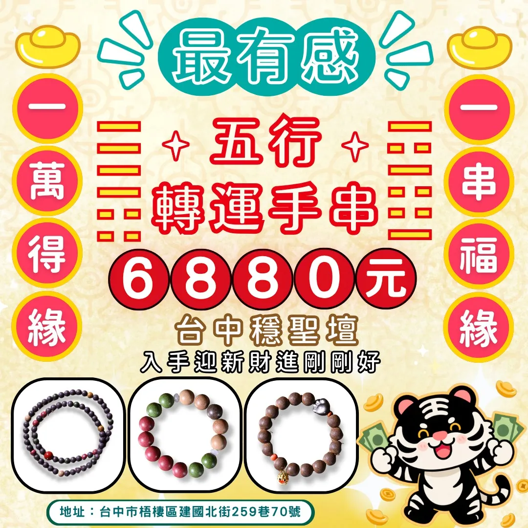由財神批示緣主流年、調整居住磁場、溝通祖先問題,製作出專屬手串開光加持,調整你的五行氣場、招財聚福
