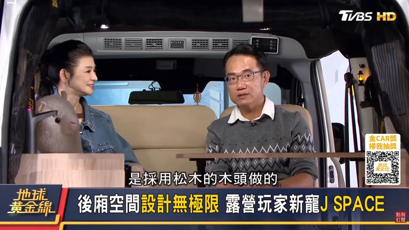 《地球黃金線》節目上,改裝專家葛蘭特與主持人蘇宗怡一同賞車了這輛J Space改裝露營車。車主不單單針對J Space的車輛佈局改造,更為家人打造了舒適暨具高度功能性的移動家居。車主的用心程度令達人們驚艷,J Space更能依照不同使用需求進行變換,上山望山海、下海觀浪都不是問題!