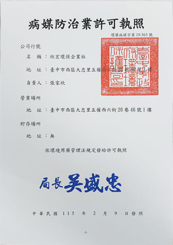欣宏環保消毒除蟲致力於提供專業、安全、有效的病媒防治與環境消毒服務。