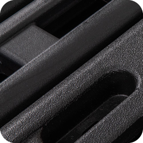 PE環保材質床板 特殊的橢圓形凹槽設計與透氣氣孔。