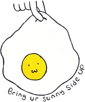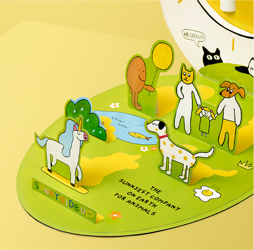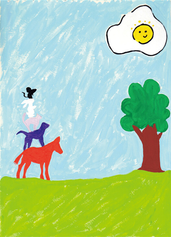 這是我在 7 歲時畫的「幸福動物世界」 我畫畫時總是離不開樹、動物,還有太陽。 而我畫的太陽……總是長得有點像一顆蛋。 所以最後,我就把公司取名為 Sunny Side UP!