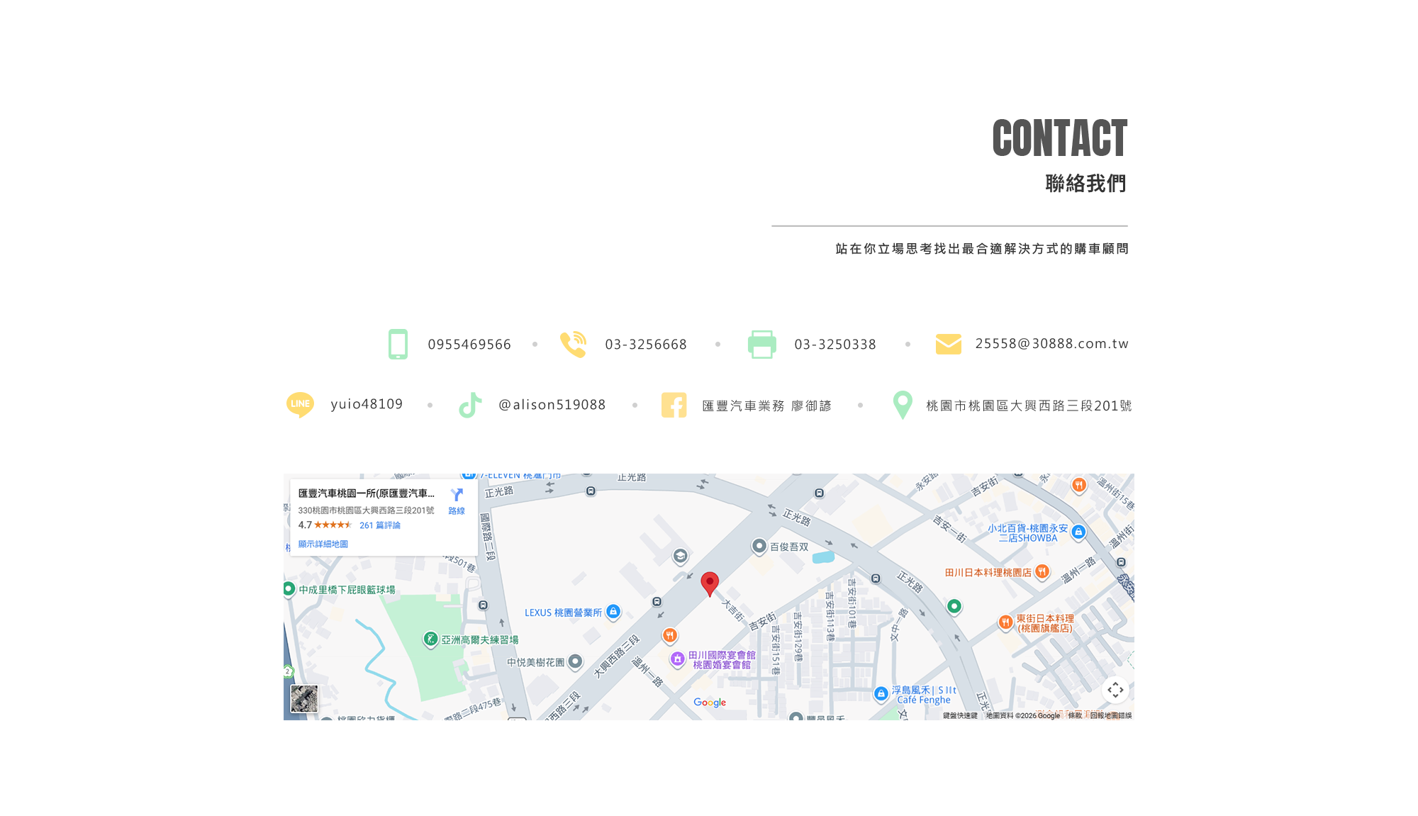 - 電話 : 03-3256668 電話 : 0955-469-566 地址 : 桃園市桃園區大興西路三段201號