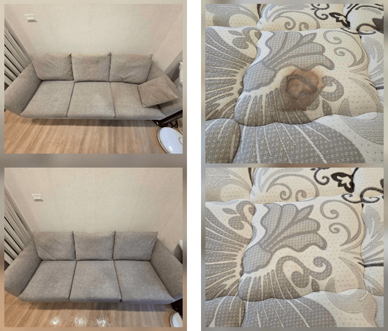 不同於市面普遍使用德國凱馳常溫水洗,路易士專業清潔,使用美國mytee加熱型回收清洗機,高溫熱水能有效分解床墊、沙發深層的頑固油脂與殺瞞等過敏原。