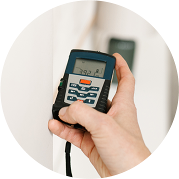 使用專業甲醛偵測儀器(如電化學感測器或分光光度法)進行室內空氣品質檢測。