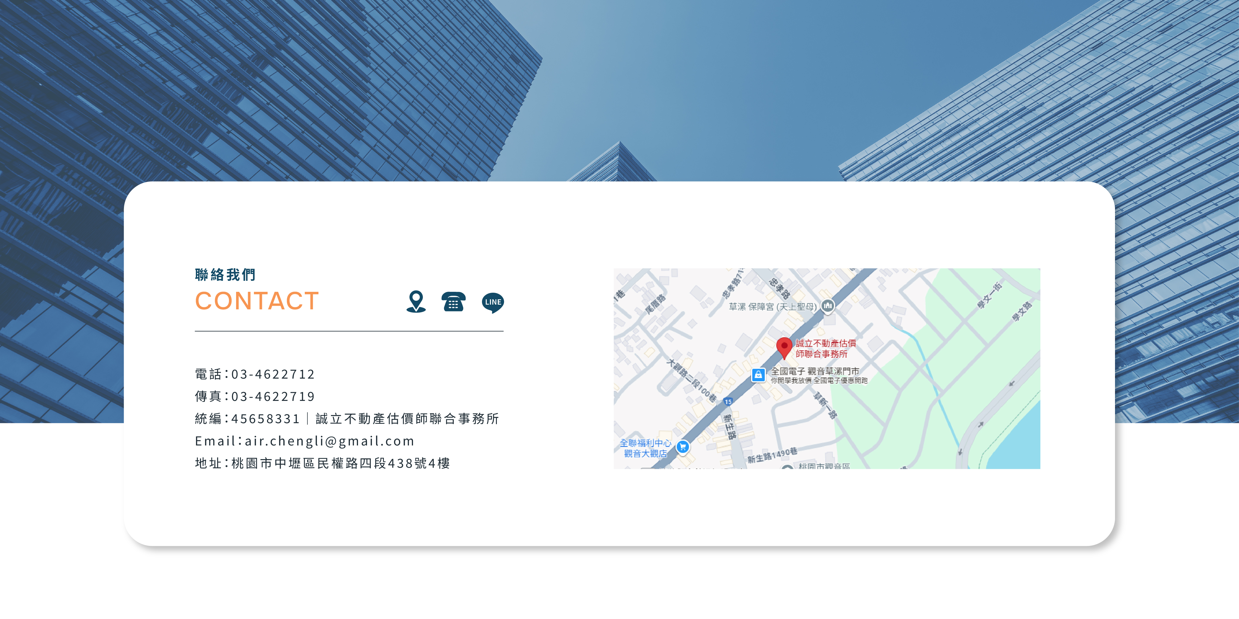 - 電話 : 034622712 地址 : 民權路四段438號4樓 信箱 : air.chengli@gmail.com