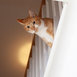 保母準時上門,先跟貓主子打招呼,降低陌生感。