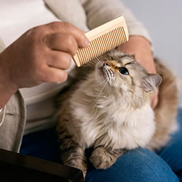 若貓咪願意,我們會陪玩、梳毛,讓牠心情放鬆。