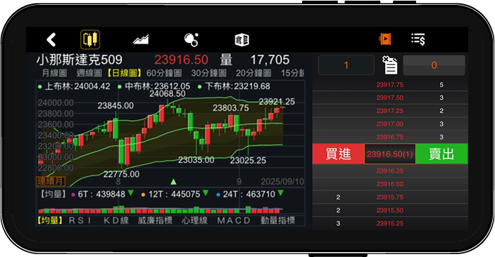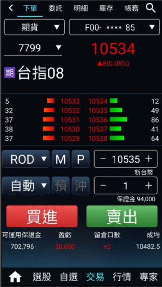 下單畫面即時顯示 商品保證金資訊 與 可運用保證金餘額,資金狀況一目了然。