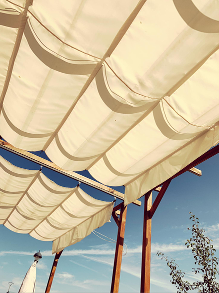 遮陽彩帶與黑網能有效阻擋陽光直射,降低室內溫度、節省能源。百褶天篷天幕更適合露天咖啡座、戶外活動空間,兼具遮陽與裝飾效果,打造舒適又具設計感的環境。