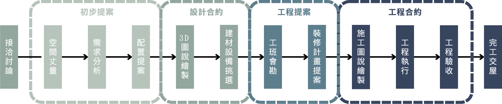 並依此擬訂裝修計畫與報價清單,當報價獲得您認可,即簽訂工程合約。